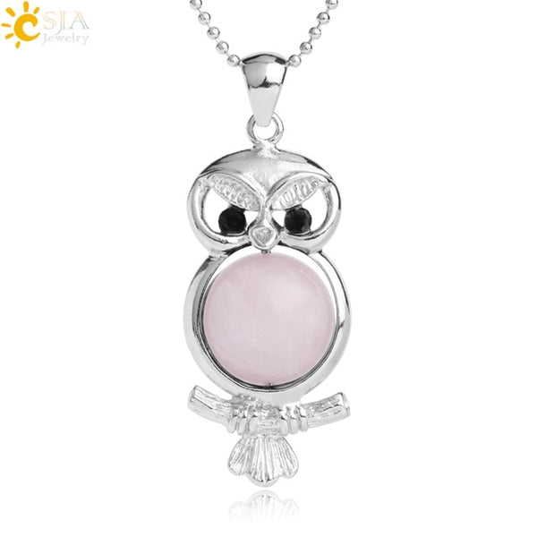 Pendant Feature: Natural Round Ball Stone + Owl Shape + Rhinestone